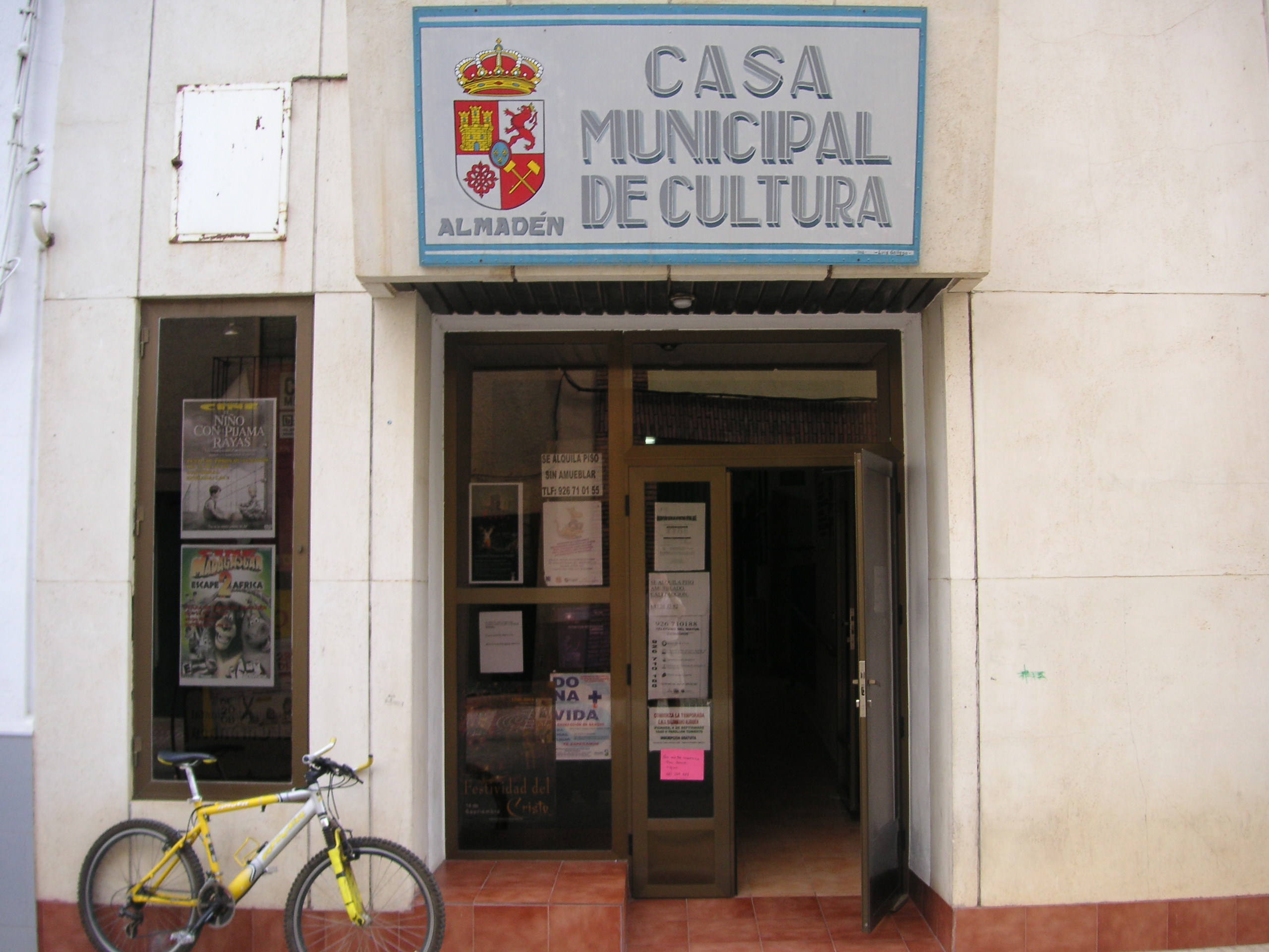 Entrada a la Casa de Cultura de Almaden Preparando la exposición fotográfica