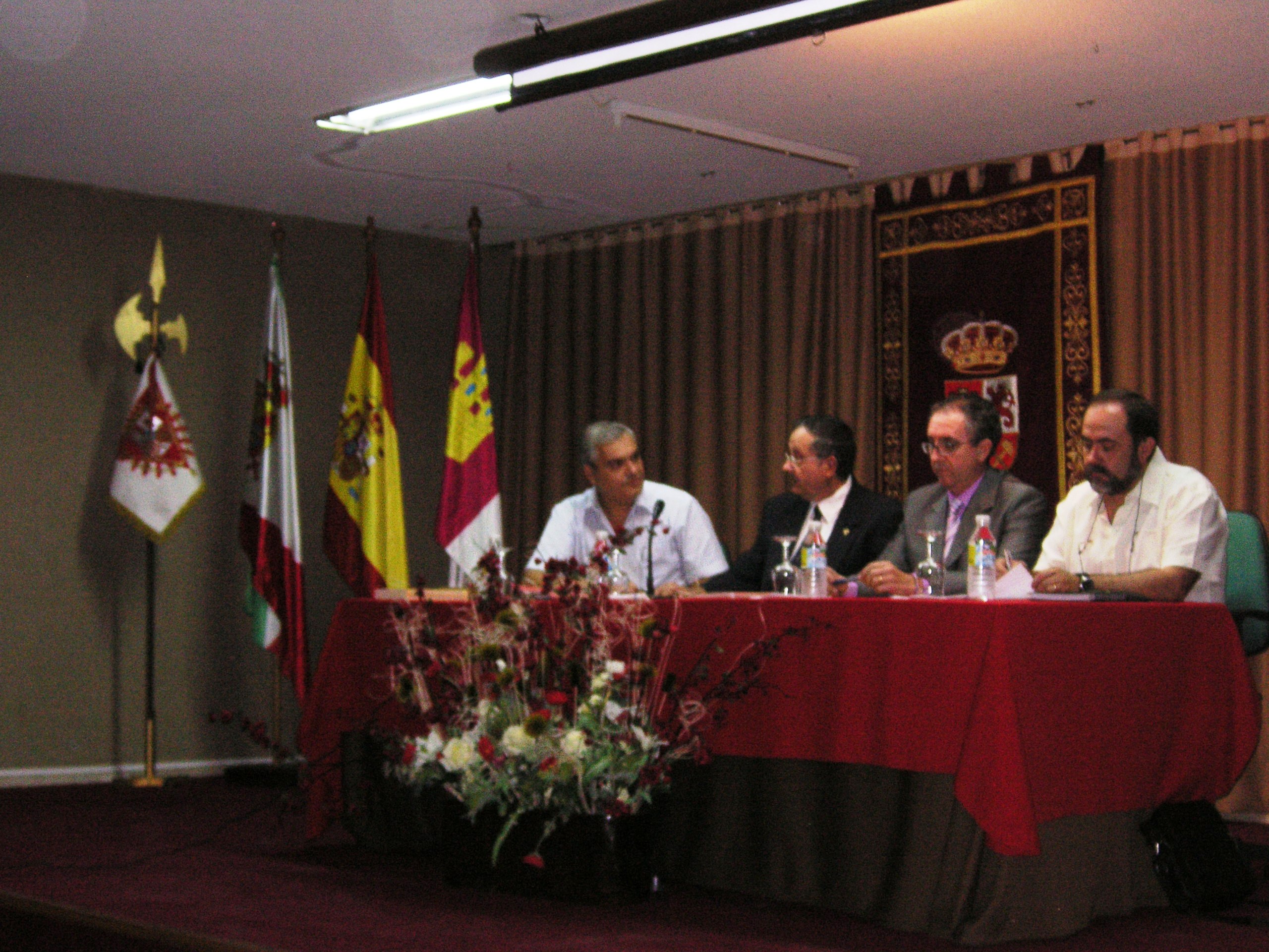 Mesa de conferenciantes Nuestro Presidente en charla con las autoridades y Paco Muñoz