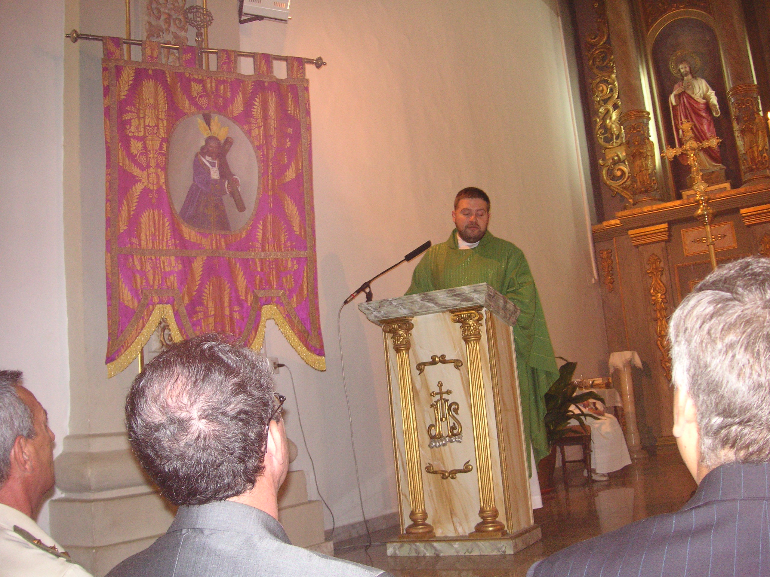 El sacerdote durante la homilía El vocal de la Hermandad Antolinos en la iglesia