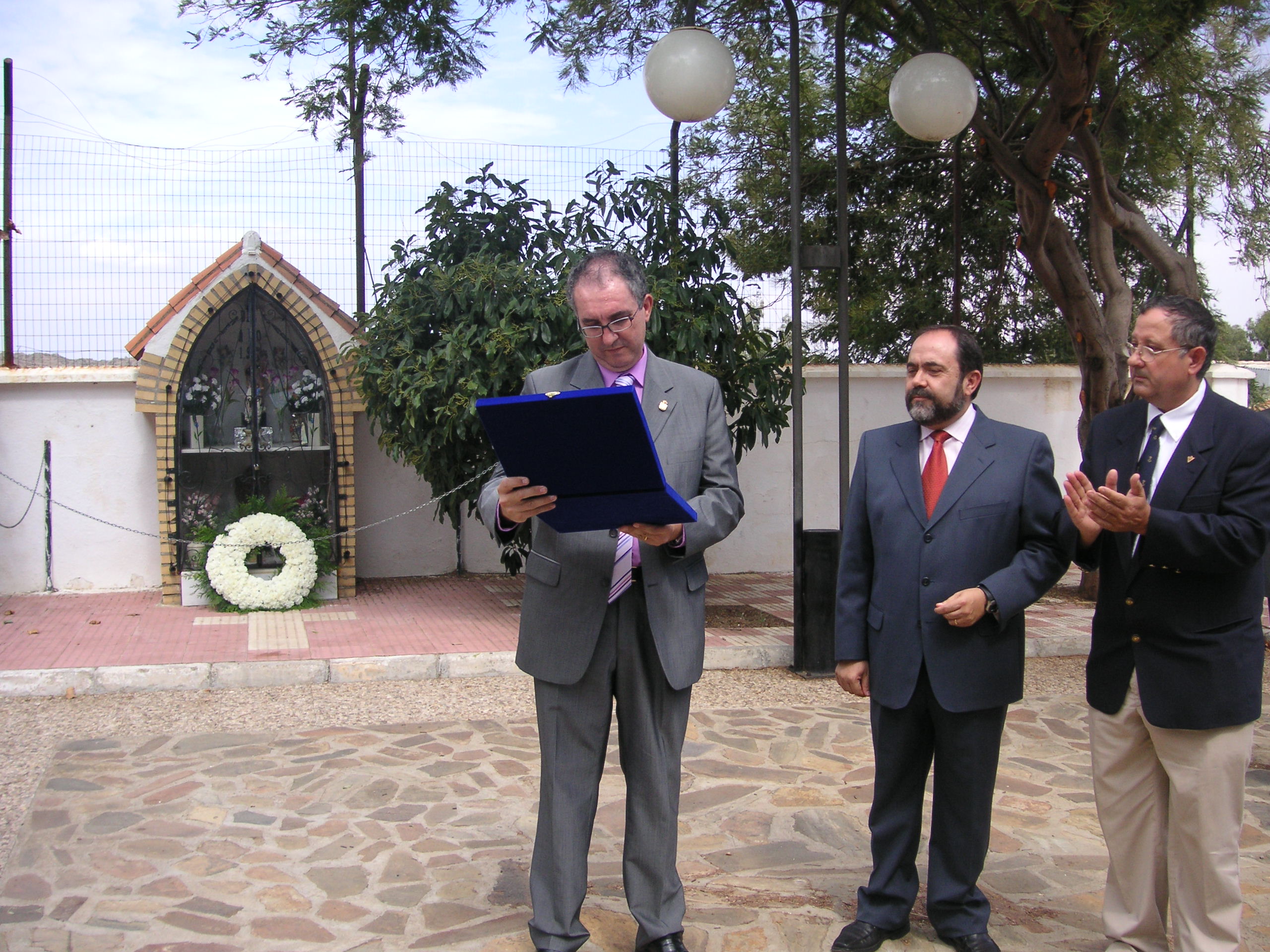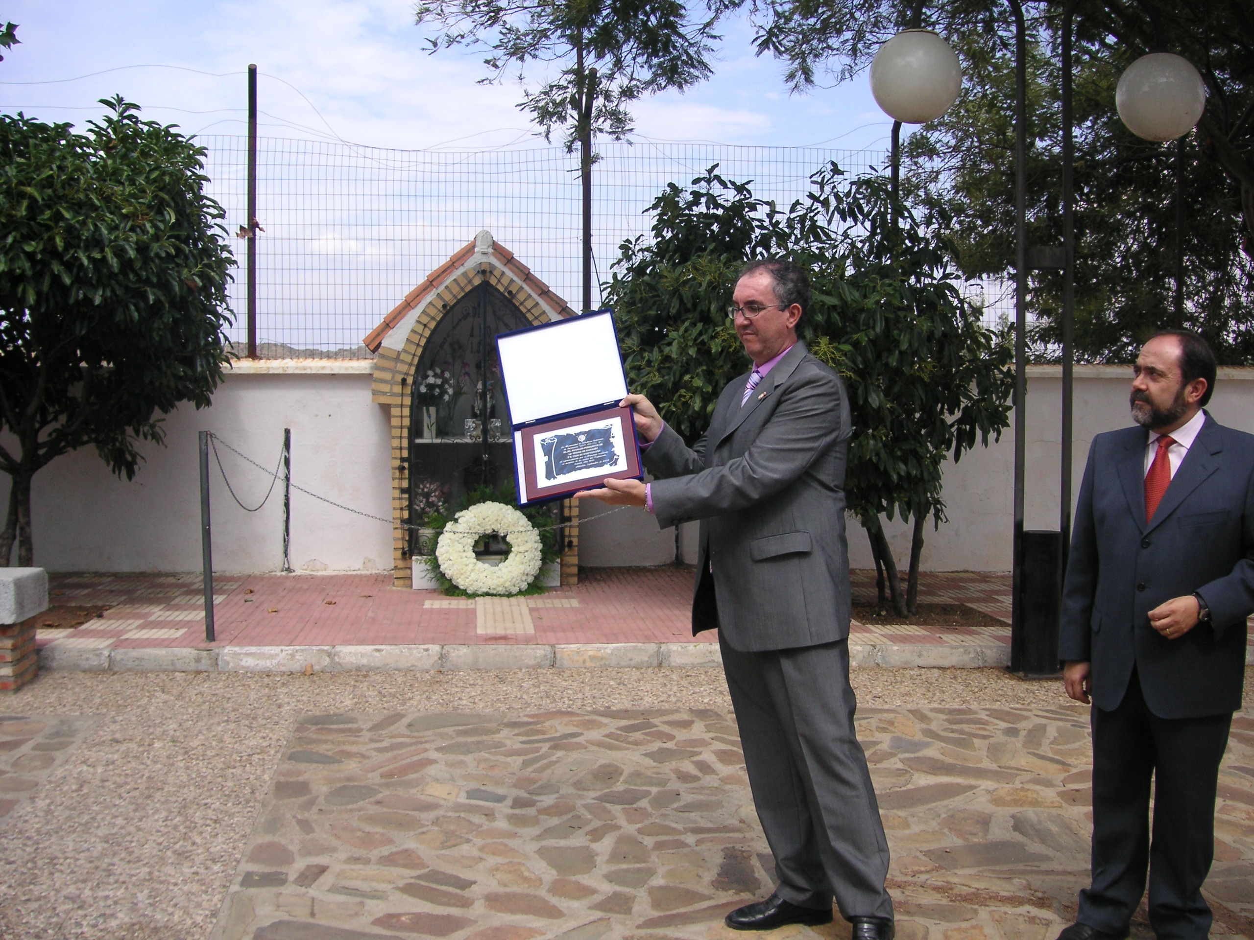 Durante la entrega de la placa ofrecida por la Hermandad de V. Placa ofrecida por la Hermandad de Veteranos