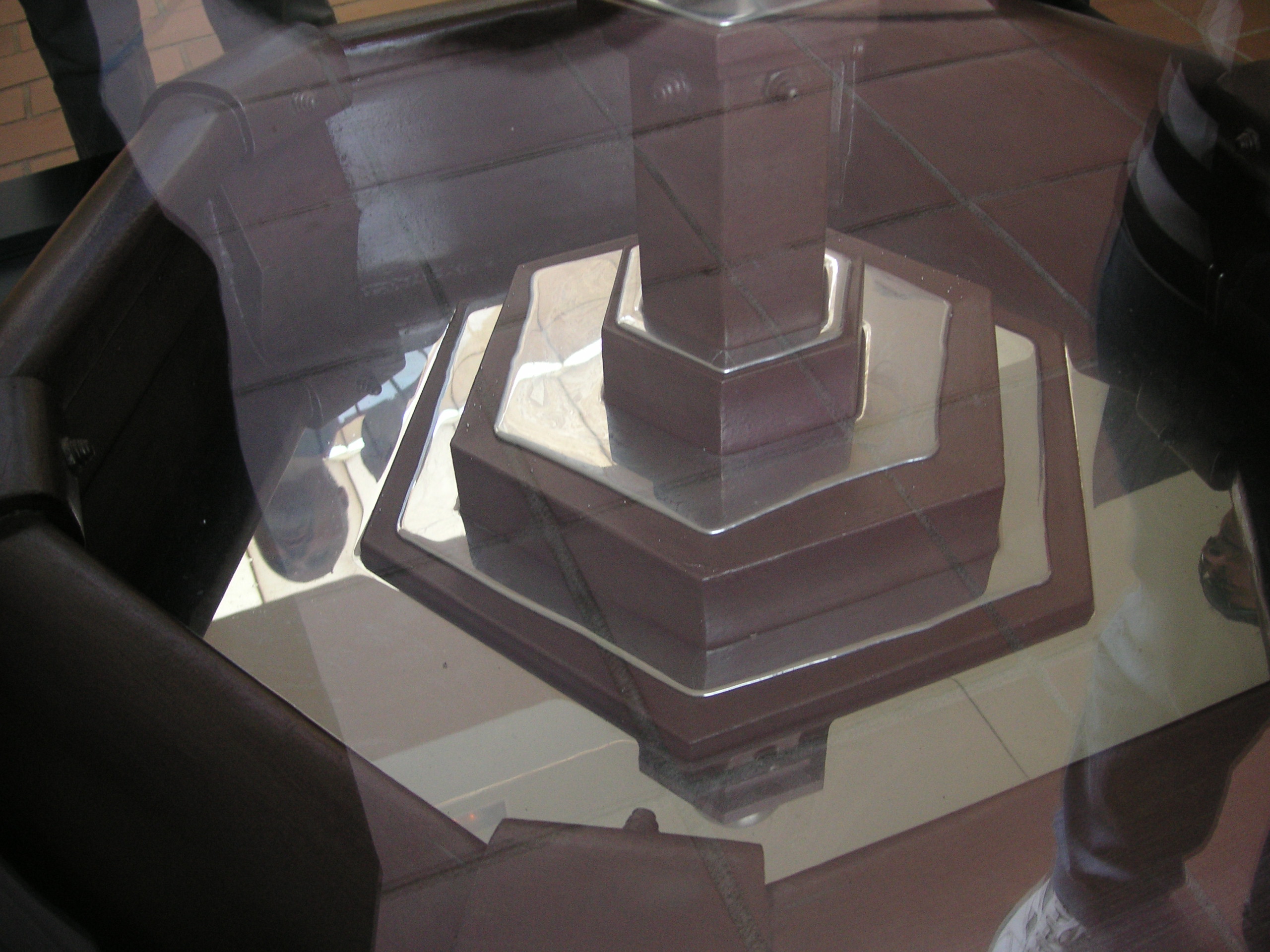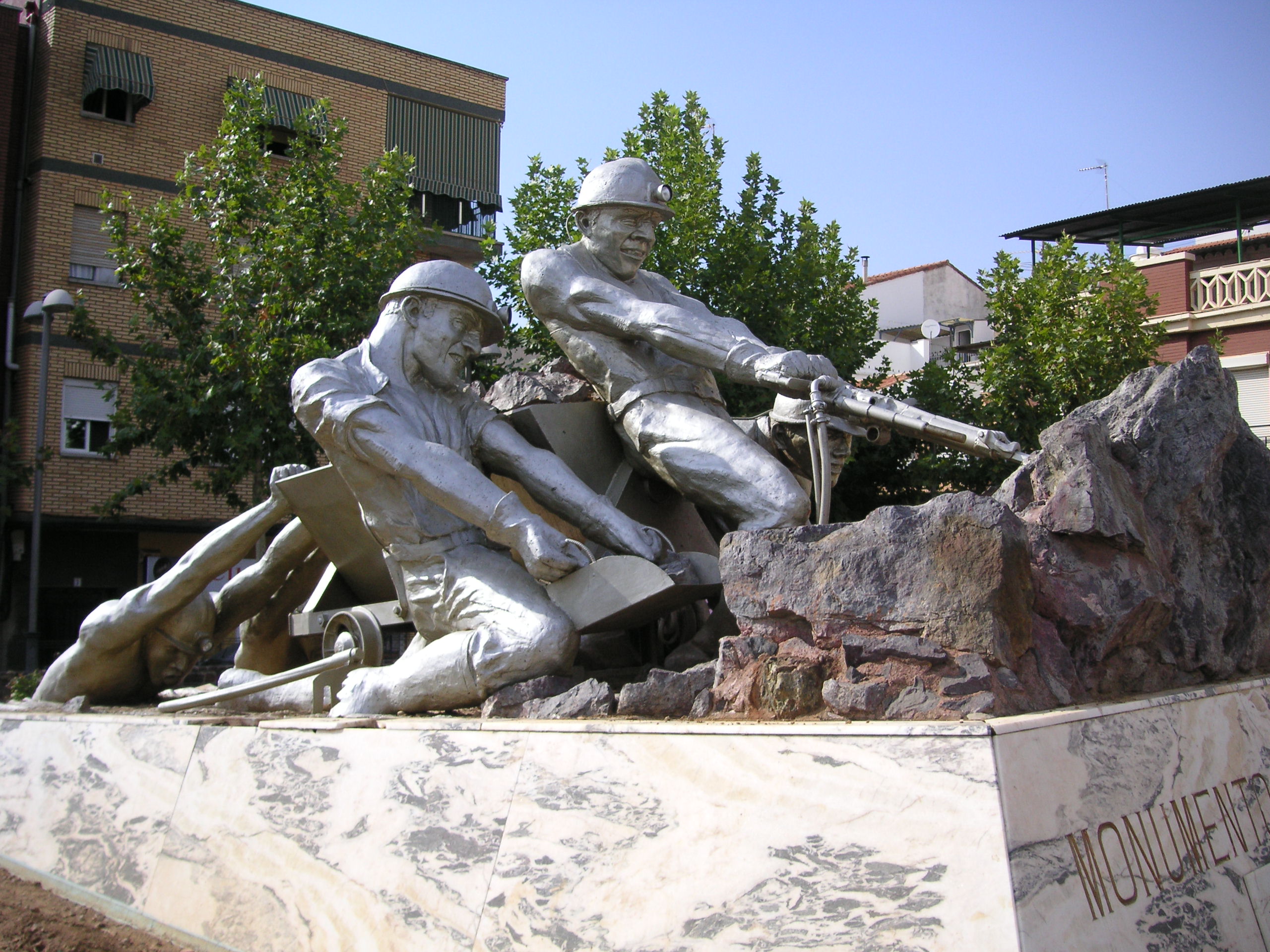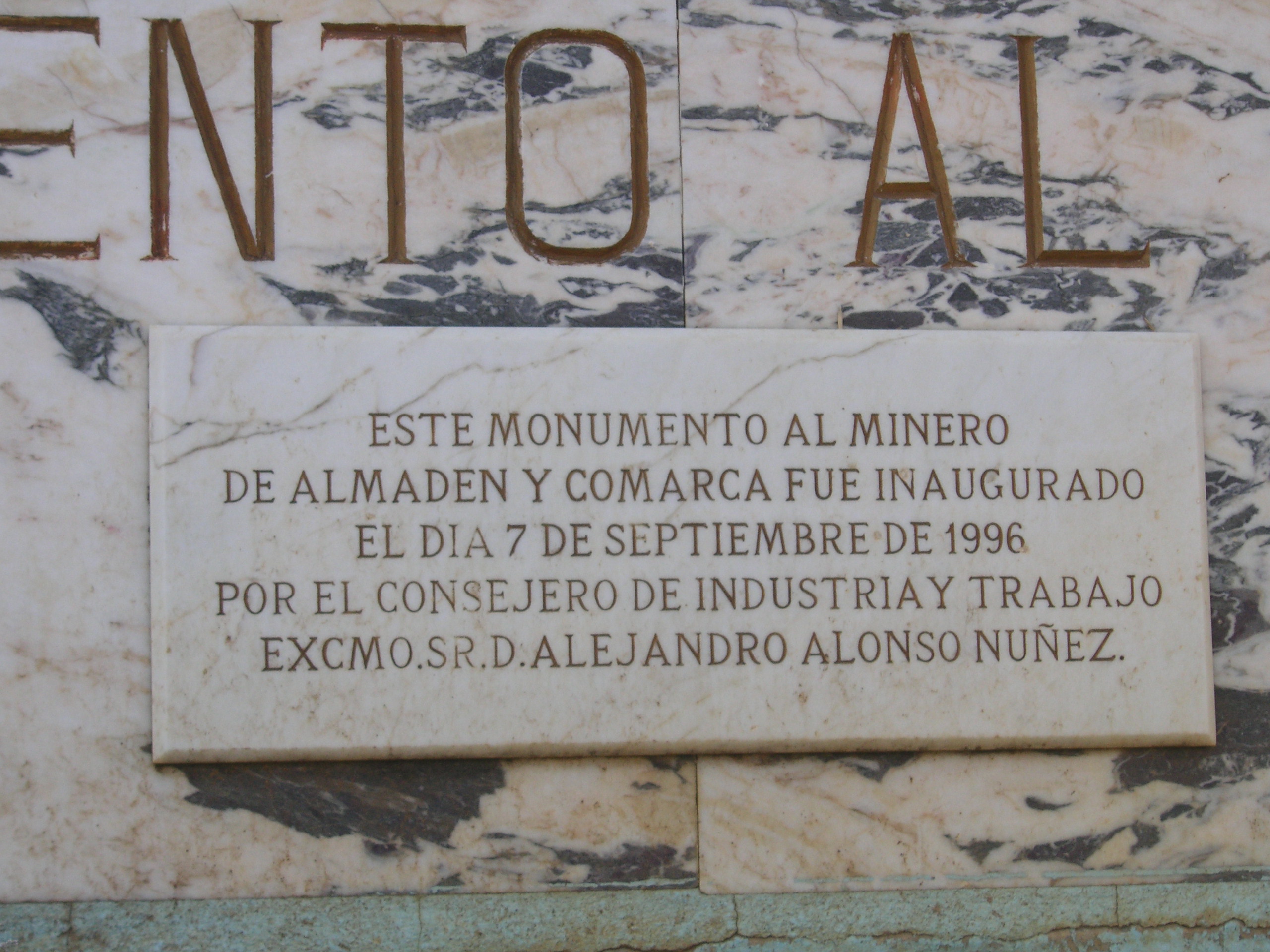 Entrega al Teniente de Alcalde de un recuerdo de la Hermandad Monumento al minero erigido en el centro del pueblo de Almaden