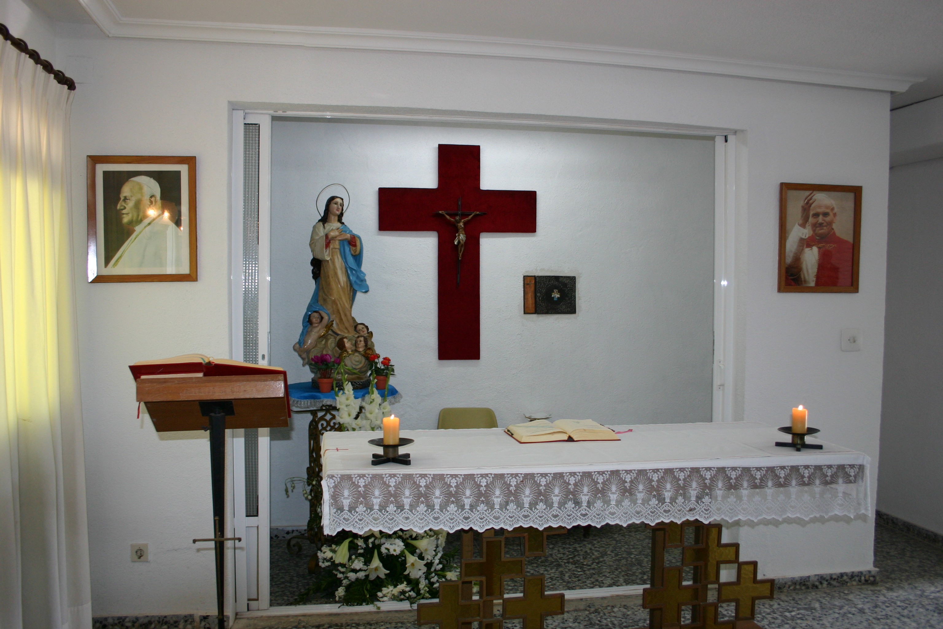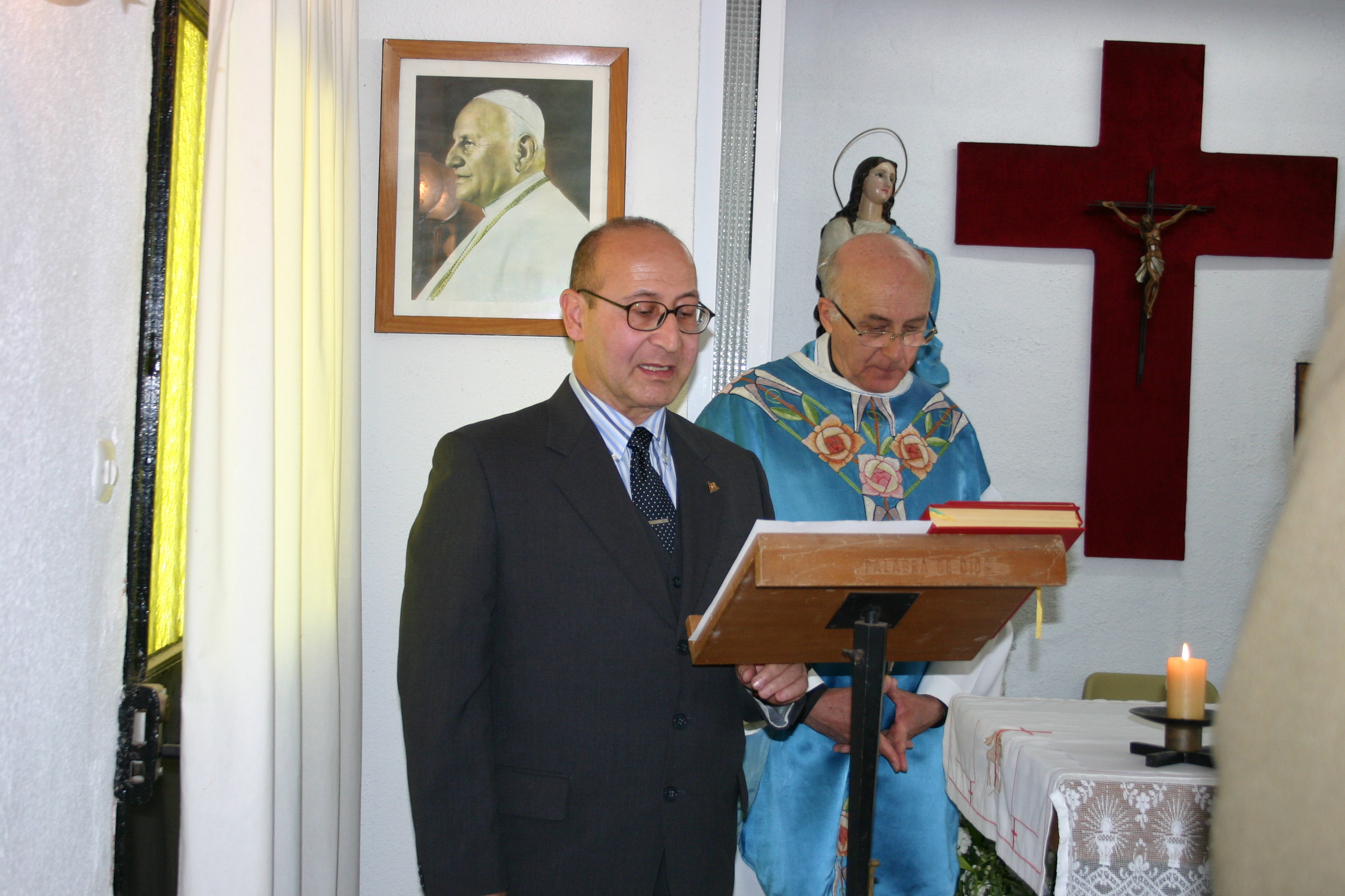 Capilla con La Inmaculada El socio de la Hermandad Sr. Lozano durante la lectura