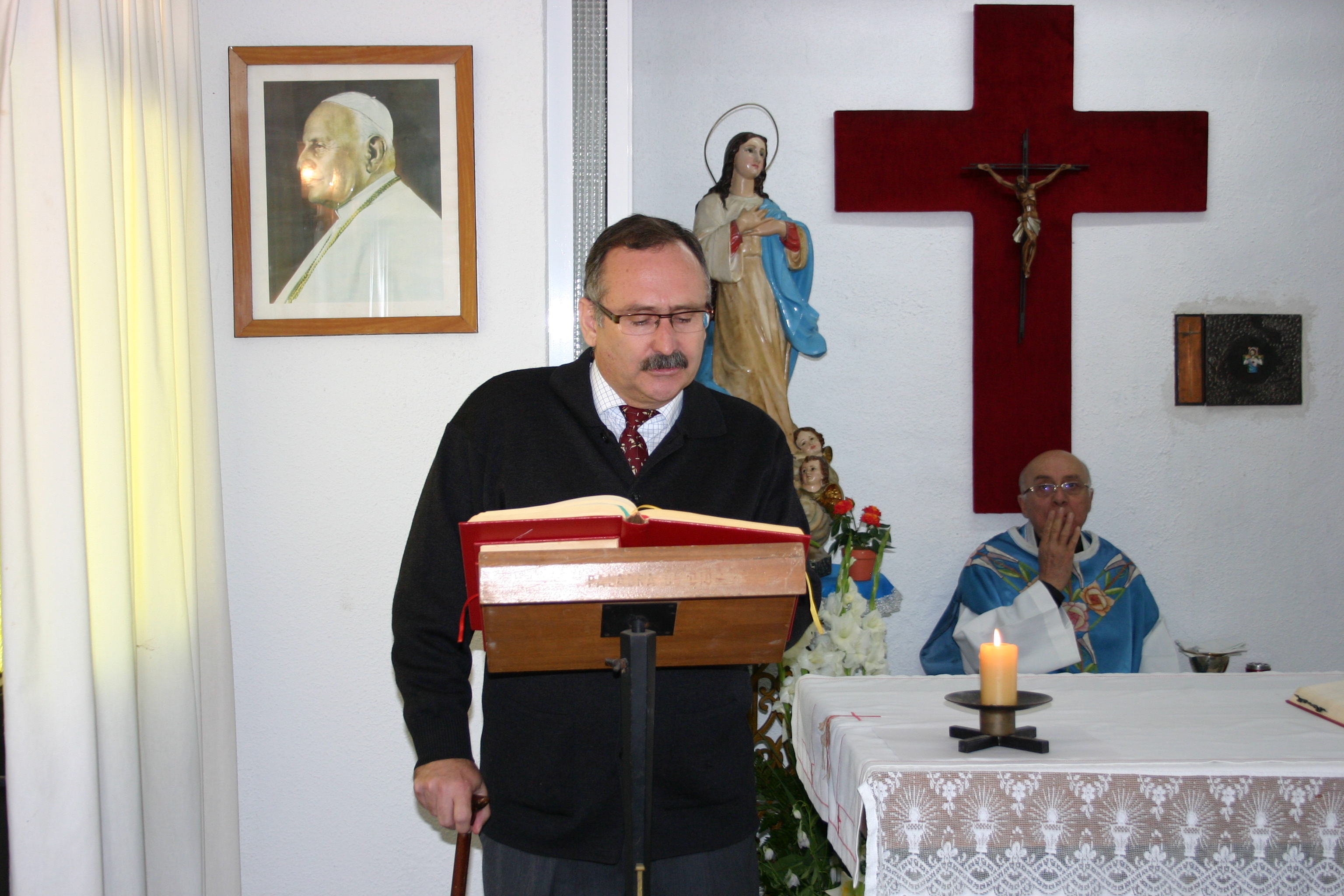 El socio Sr. Sánchez Plaza durante la lectura Durante la Santa Misa