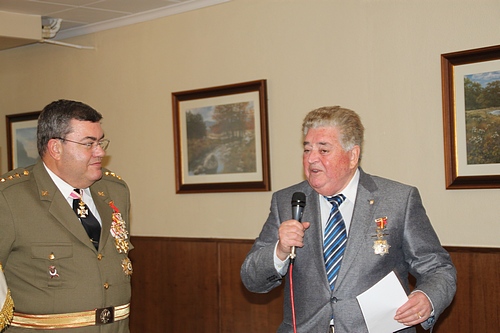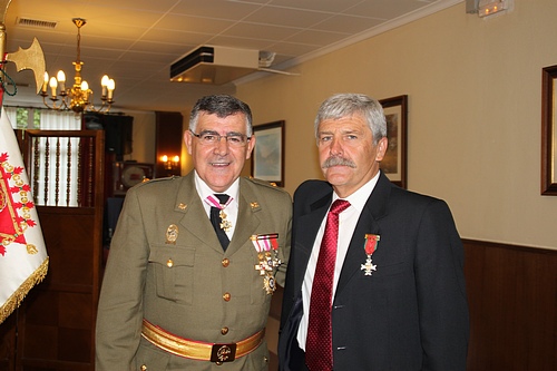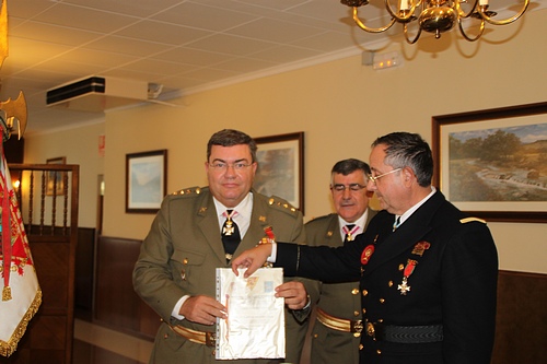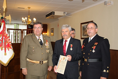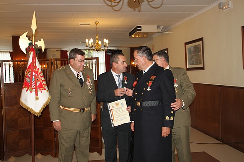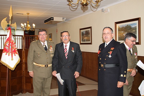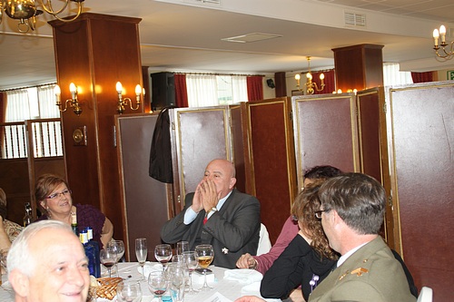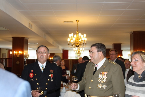 A las 14 horas nos trasladamos al Club Naval de Oficiales que esta muy cerca del cuartel y dimos cuenta del estupendo vino-cocktail que nos habían preparado. A los postres se llevo a cabo la imposición de las Medallas de La Hermandad de Veteranos que han sido concedidas este último año a los siguientes socios: