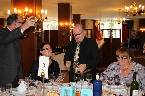 Ya en otro orden de cosas diré que al final del vino como siempre nuestro vice De Juana y nuestro vocal Antolinos cantaron la famosa avispa.