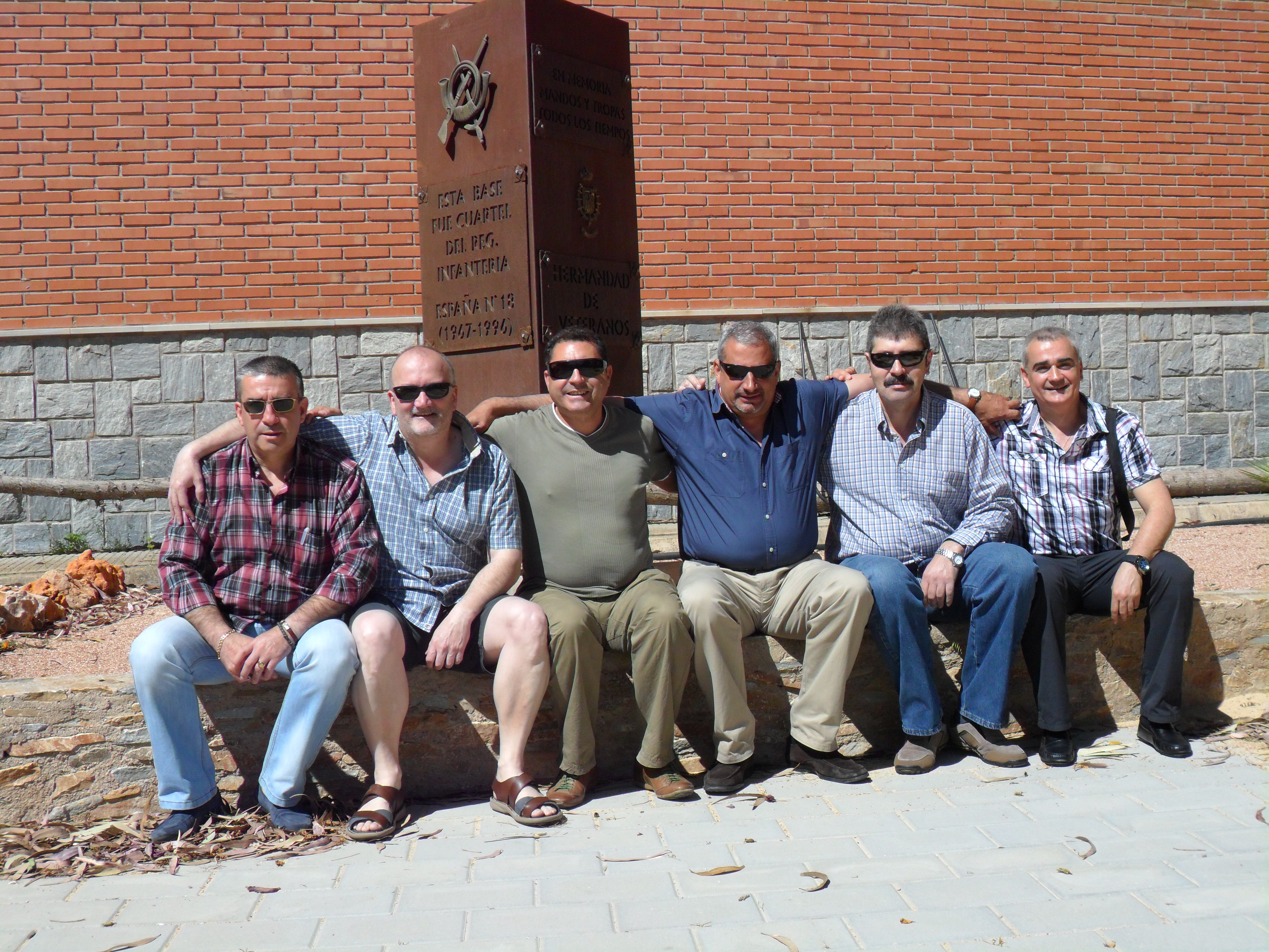 Se reúnen todos los años una vez desde hace diez, esta vez para celebrar el X aniversario el encargado este año de organizarlo pensó en hacerlo en Cartagena y si era posible visitar su antiguo acuartelamiento donde prestaron su servicio militar, para lo que a través del Jefe de la Zona de Reclutamiento de Pamplona donde reside en la actualidad se puso en contacto con esta Hermandad de Veteranos, siendo su enlace el secretario de la misma, llevándose la gran sorpresa y alegría de que los seis habían prestado su servicio en su antigua compañía, la 1ª de Carros, el mismo les facilito el acceso al antiguo Cuartel, hoy ocupado por otra Unidad, así como la visita al a nuestro local social y al Monumento en recuerdo del Regimiento.
