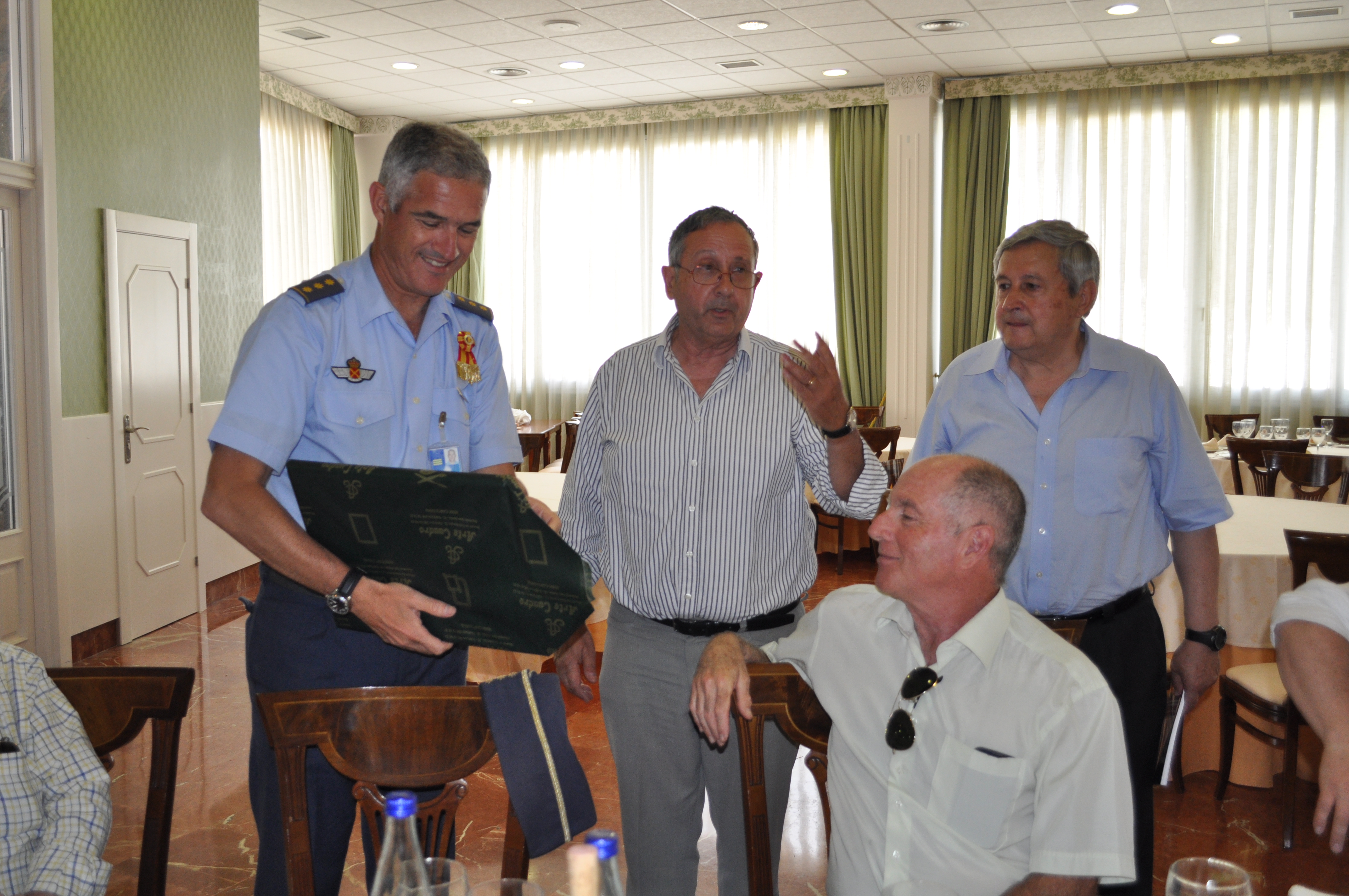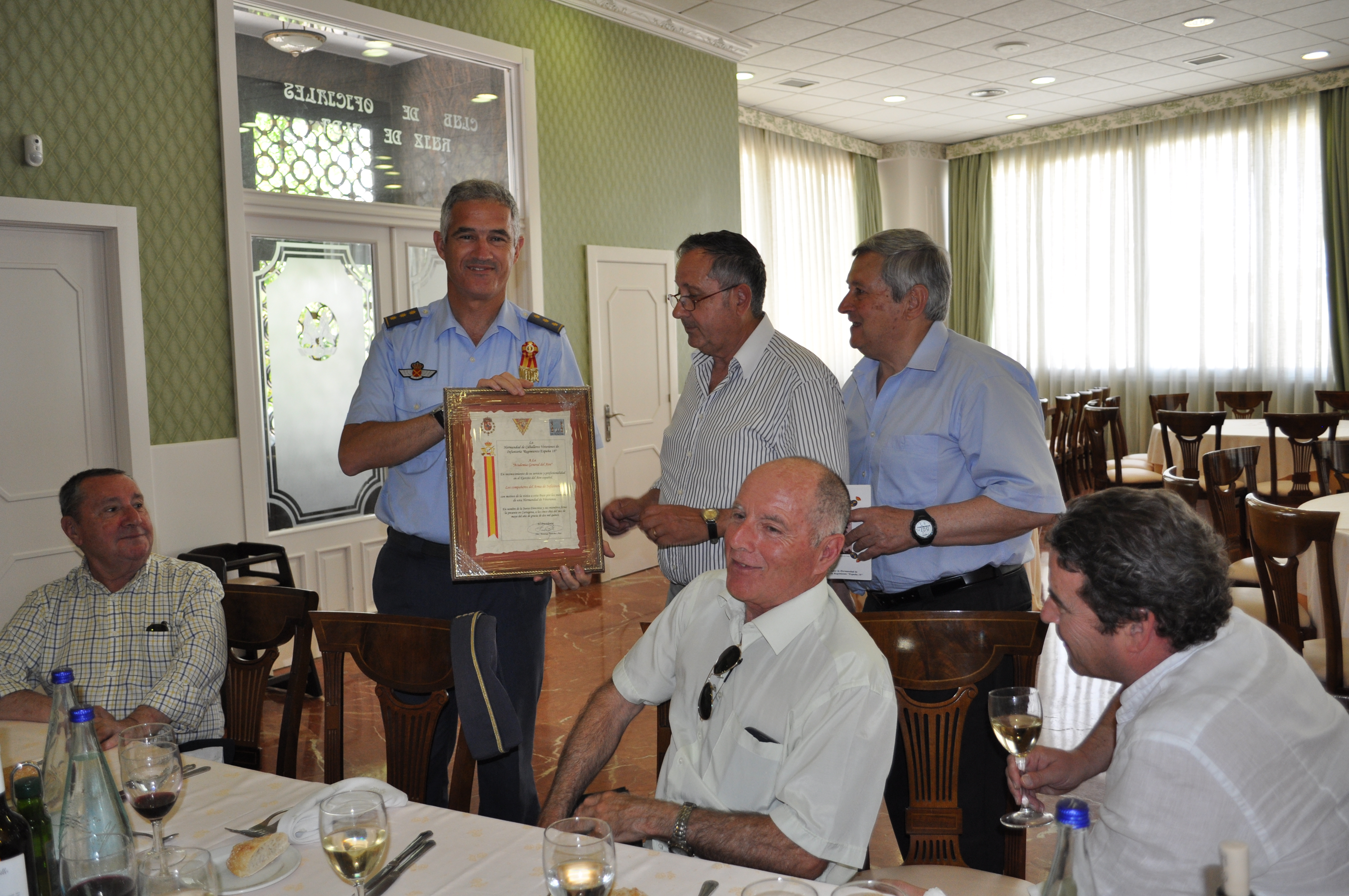 Como he dicho antes sobre las 14 horas marchamos al Club de Oficiales del Aire ubicado junto al Mar Menor en Santiago de la Rivera donde nos acompaño el Sr. Coronel Director y dimos cuenta del estupendo Caldero del Mar Menor que nos preparo el estupendo cocinero del Club . Al final de la comida le fue entregado al Sr. Coronel Director de la Academia un cuadro con un pergamino como recuerdo de la visita realizada. En resumen pasamos un buen día de hermanamiento en compañía de amigos y familiares.