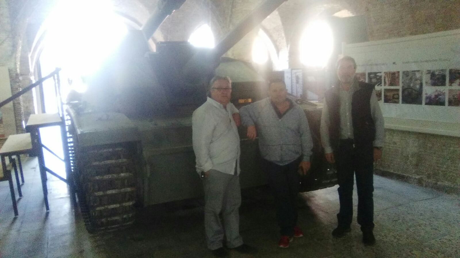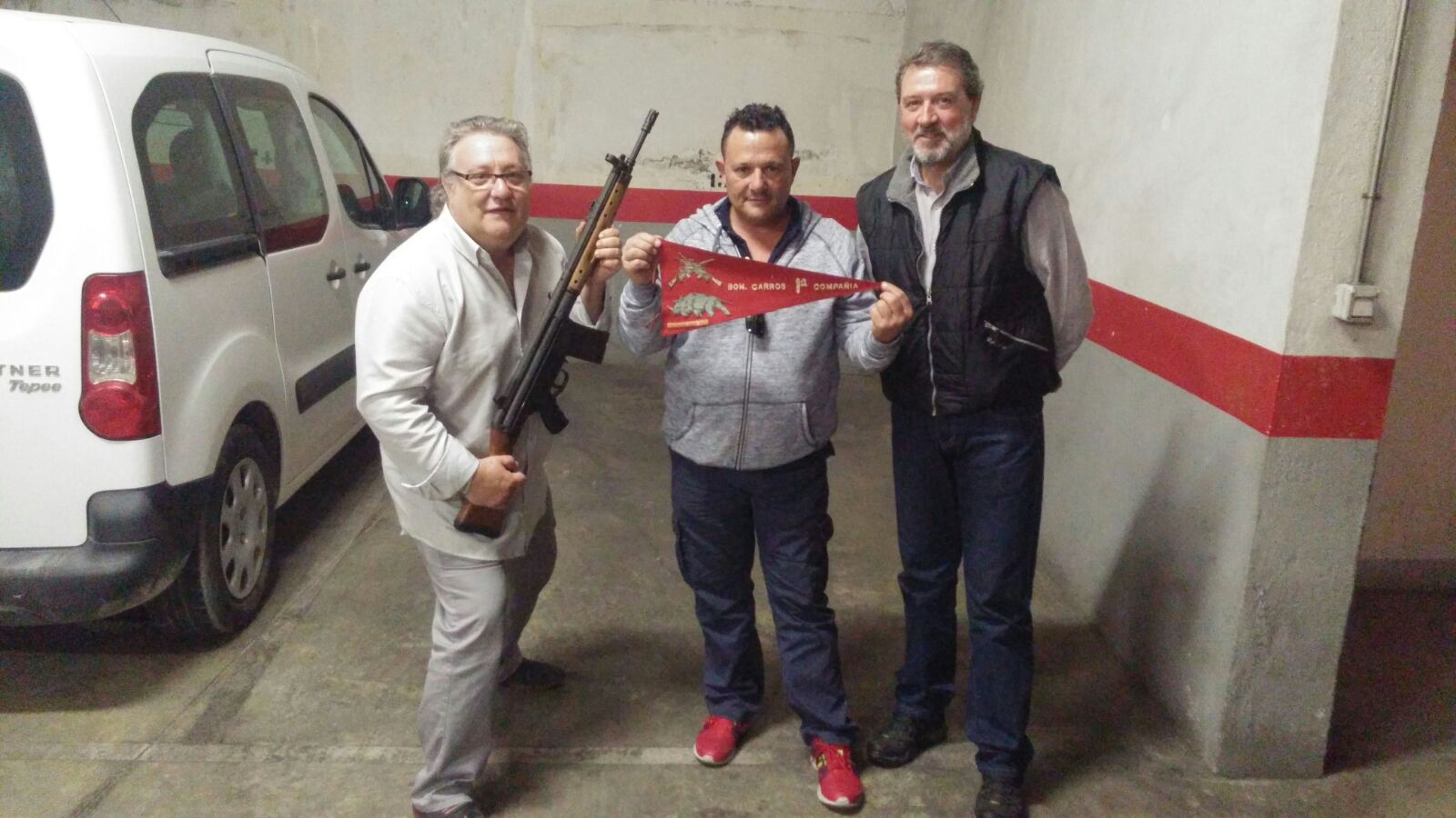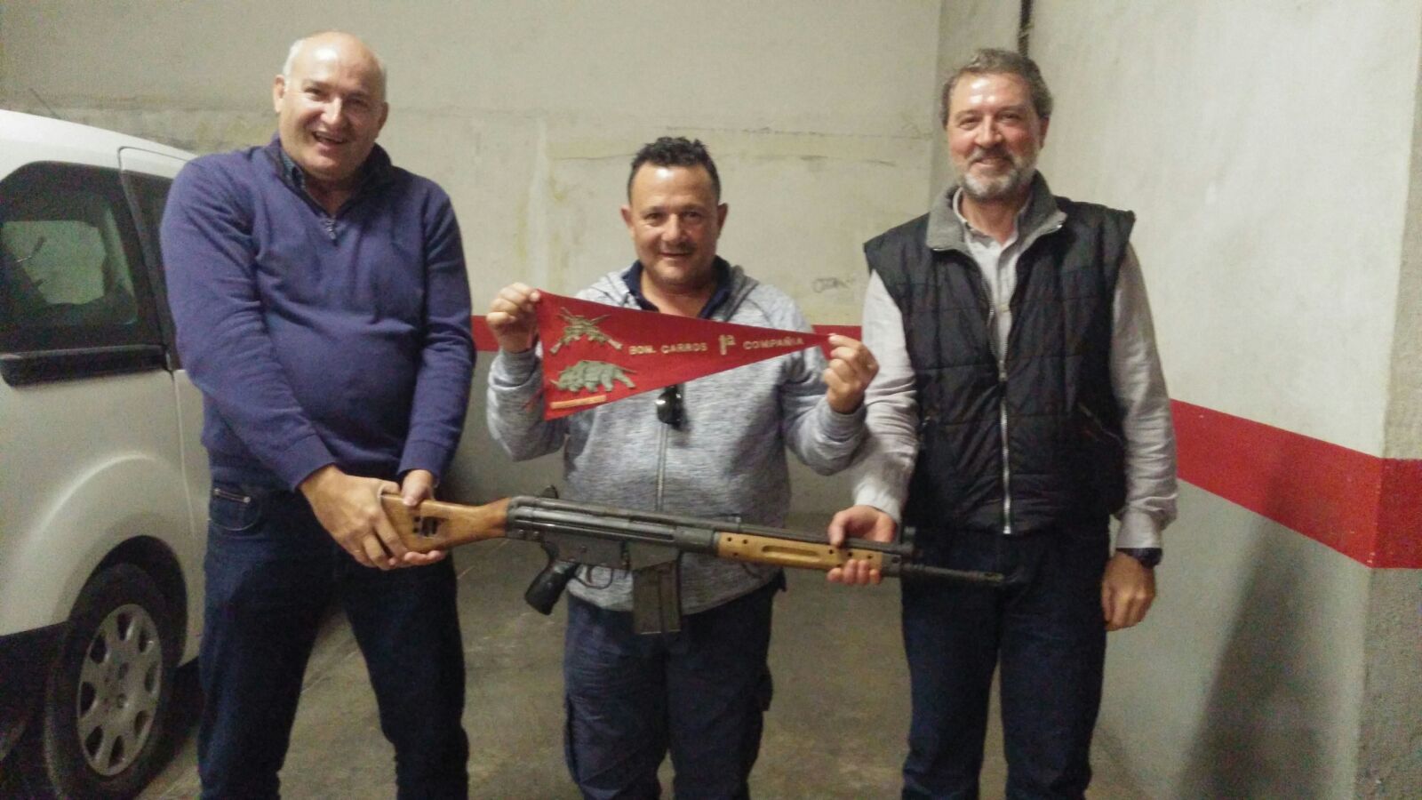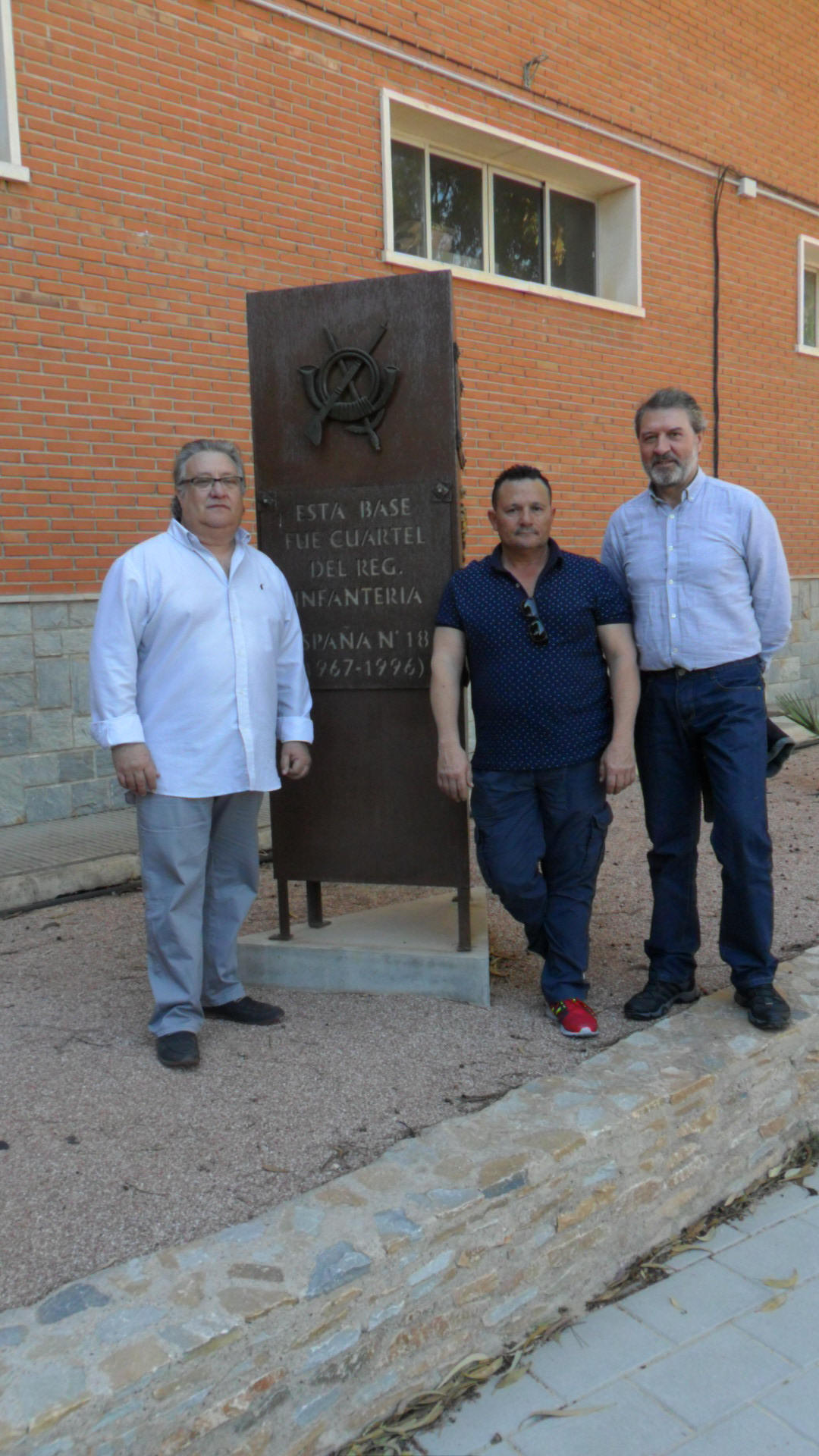 El día 19 de Noviembre de 2016 personal del R/81-1º ha efectuado una visita al Acuartelamiento de Tentegorra, antigua sede de nuestro Regimiento España 18 en el que prestaron su servicio en el Batallón de Carros 1ª Compañía, durante el recorrido por el mismo han recordado viejos tiempos que vivieron hace 35 años, han visitado nuestro local social y se han fotografiado delante del Monolito en recuerdo del Regimiento instalado a la entrada del Cuartel. Por parte del secretario de la Hermandad Comandante Carrasco esta visita le ha sido muy agradable, pues uno de ellos el Sr. Aguado estuvo con el de escribiente en la oficina cuando era de Brigada, era el auxiliar del Capitán, al principio no logró identificarlo pues hay que tener en cuenta que han pasado más de 35 años y durante mi destino en la citada Cia. durante 23 años ha pasado mucho personal por la misma. También con la idea de darle una sorpresa al antiguo conductor de carros García Domínguez, avise al hoy Comandante Morillas que entonces de Sargento era su Jefe de Carros y para ambos fue una grata sorpresa poder encontrarse después de tanto tiempo.