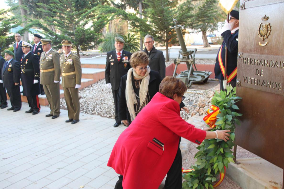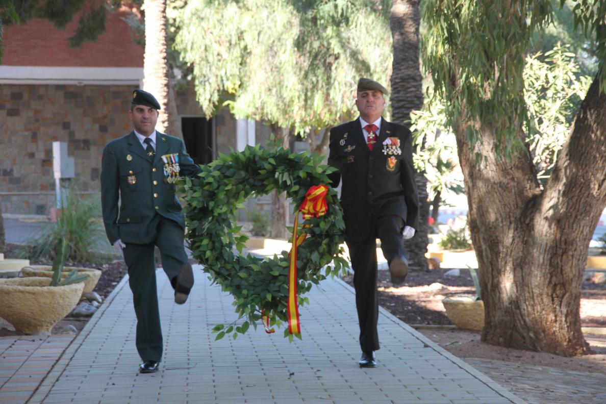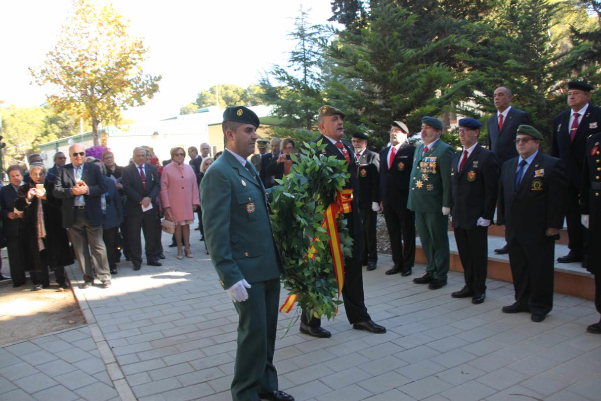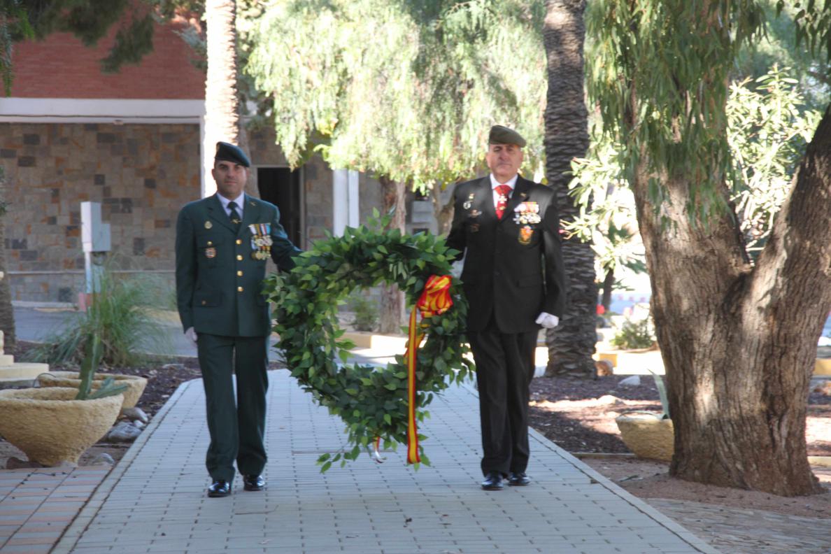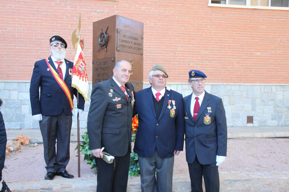 Una vez terminada la misa nos dirigimos a la entrada del Acuartelamiento, donde en los jardines esta instalado el Monolito en Memoria del Regimiento, donde se realizo un acto en memoria de todos los caídos del arma de Infantería. La Corona de Laurel fue portada por nuestros compañeros Emilio y José María a las inmediaciones del Monolito mientras por los altavoces sonaba "la muerte no es el final" , siendo las encargados de depositarla sobre el Monolito las esposas de nuestros compañero Todosio de Juana y Santiago Sánchez, María Isabel y María José, rezando el pater una oración y sonando el toque de oración . Al final se canto el Himno de Infantería.