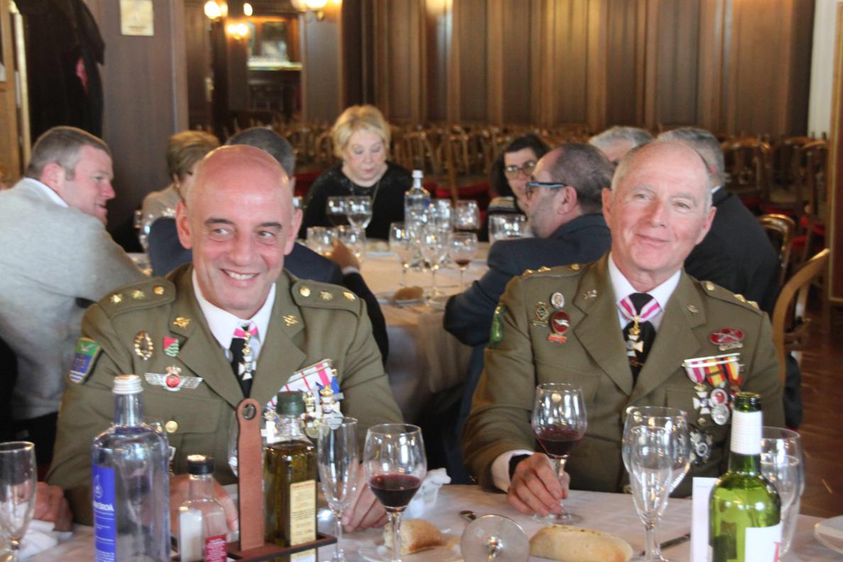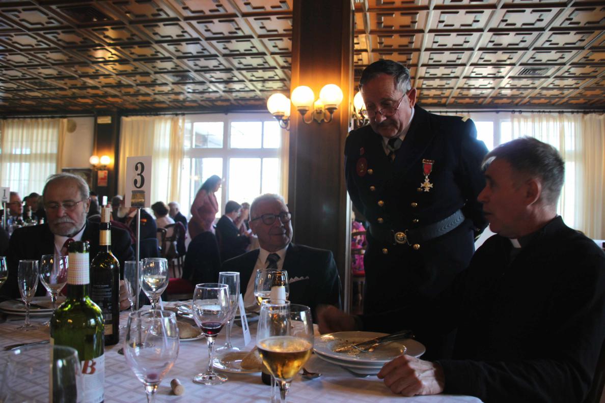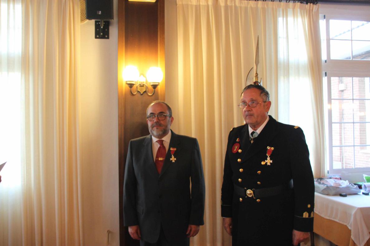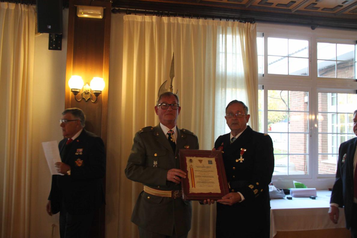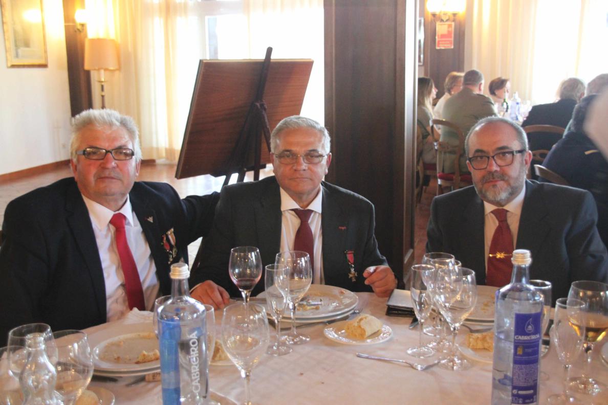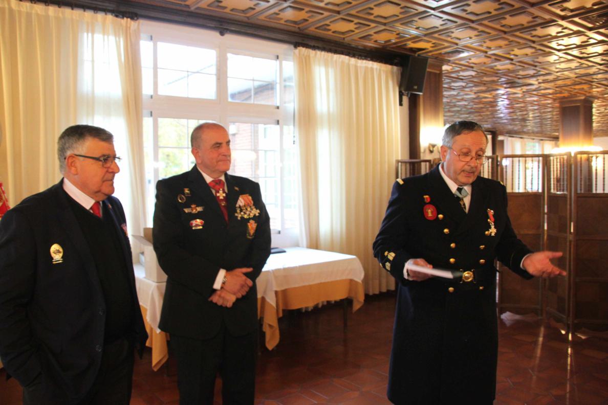 A las 14 horas nos trasladamos al Club Naval de Oficiales que esta muy cerca del cuartel y dimos cuenta del estupenda comida que nos habían preparado. A los postres se llevo a cabo la imposición de las Medallas de La Hermandad de Veteranos que han sido concedidas este último año y que a continuación se relacionan: