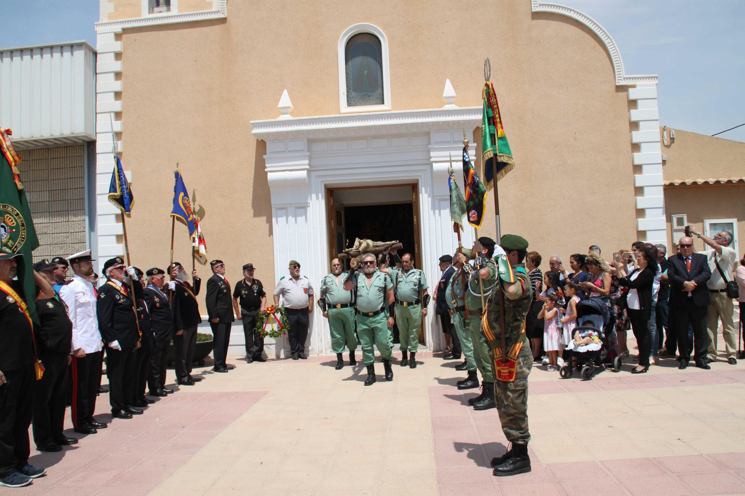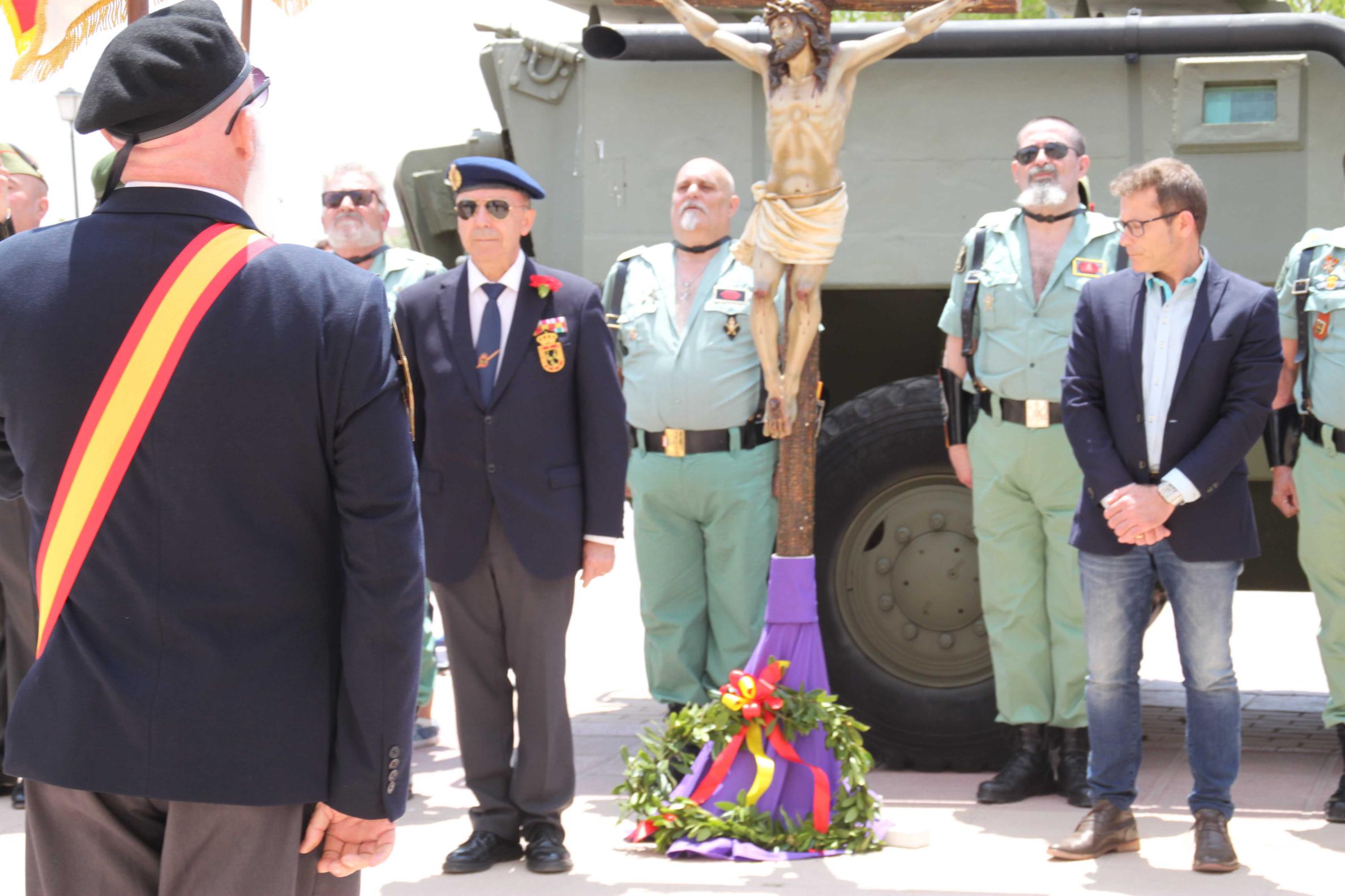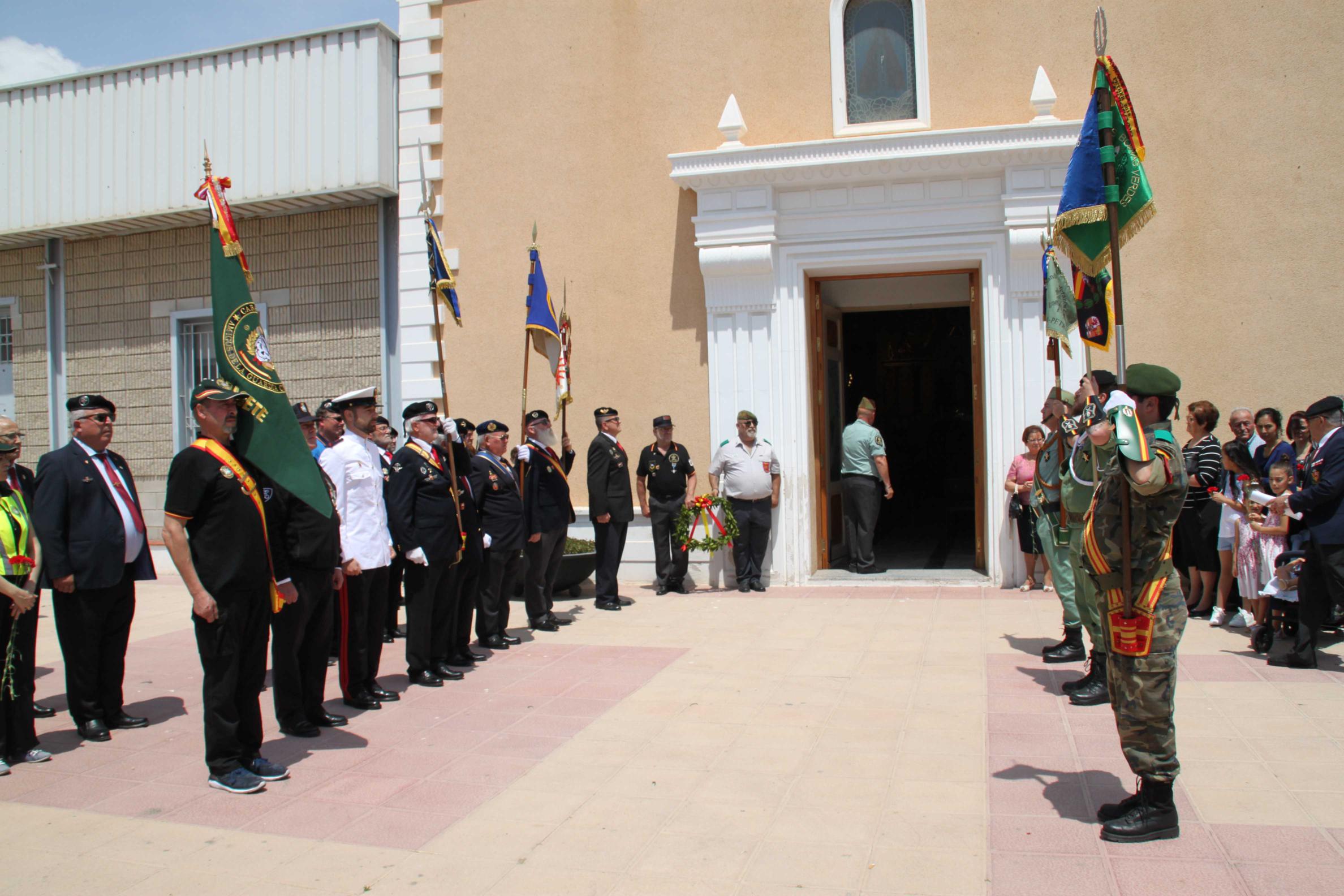 Una vez instalado el cristo con la cruz sobre un pedestal se realizo el actos a los caídos donde desfilaron todos los Banderines de las Asociaciónes asistentes y rindieron Honores cantándose la Muerte no es final y sonando el toque de oración siendo depositada una corona de laurel al pie del Cristo por el Sr. Presidente de la Hermandad de Veteranos de las Fuerzas Armadas y Guardia Civil de la Región y por el Sr. Alcalde de Torre-Pacheco.