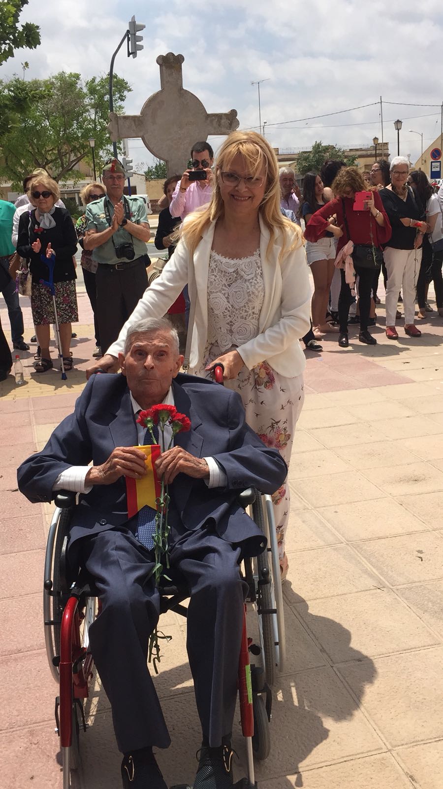 Y por último hemos querido dejar a la que, por su globalidad y carácter nacional, nos representa a todas, tanto a las presentes como a todas las ausentes, sirva esta entrega nuestro reconocimiento a todos los veteranos de las fuerzas armadas de España, vivos y difuntos.