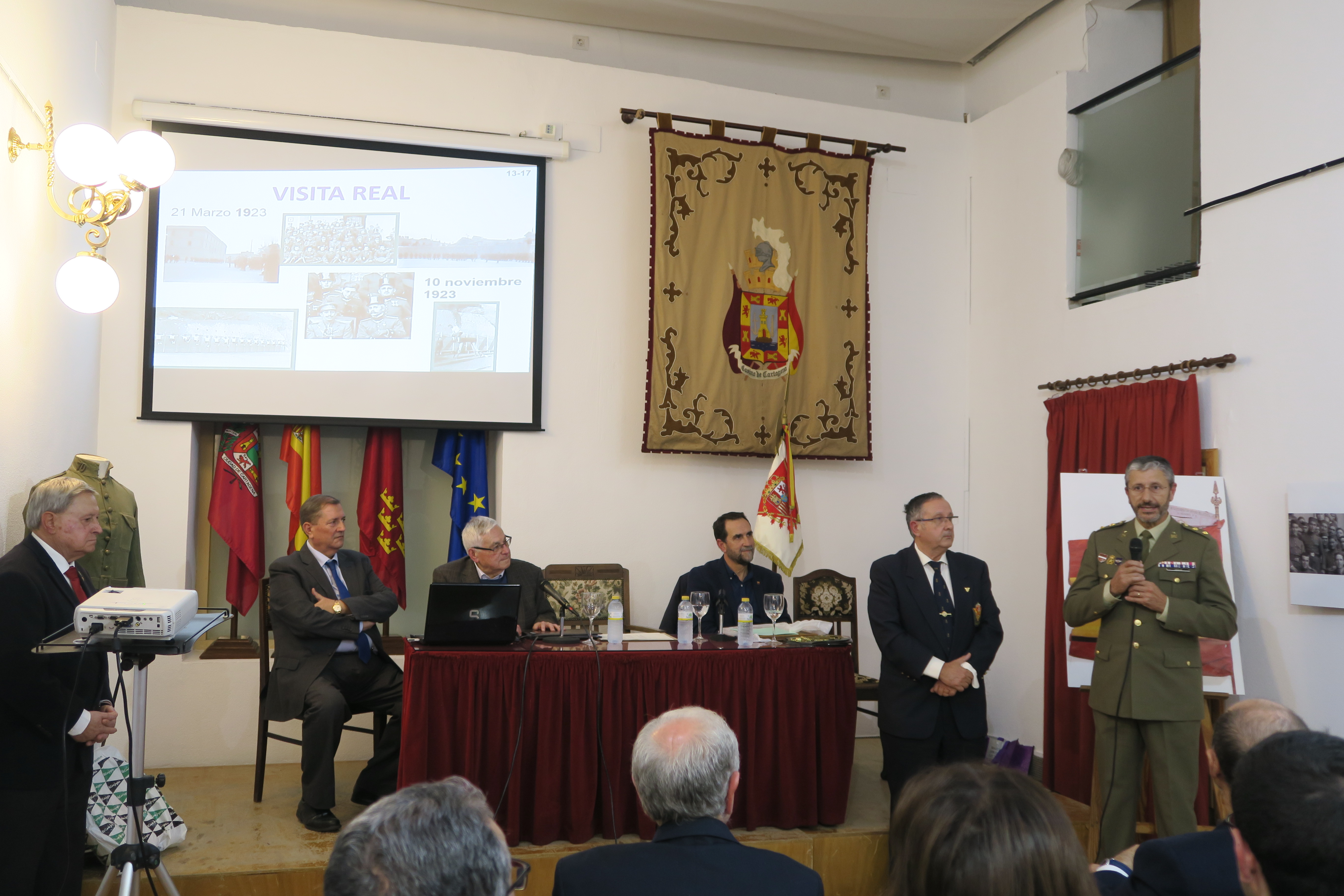 El dia 22 de Noviembre de 2019 se ha celebrado en el Casino de Cartagena un acto en conmemoracion del centenario de la entrega de una nueva Bandera al Regimiento de Infanteria Cartagena nº 70.